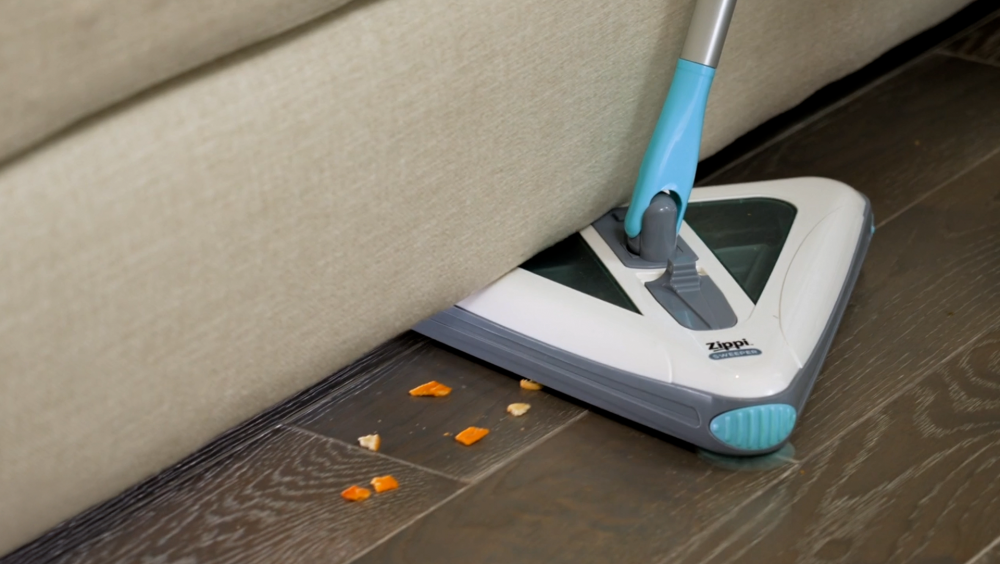 Zippi Sweeper is a revolutionary cordless electric sweeper that combines the convenience of a broom with the power of a vacuum. The patented triangular design and Tri-Brush Technology combine to give you 360° of cleaning power that reaches every last inch of your home, effortlessly!.